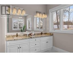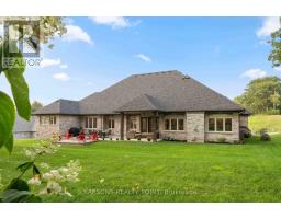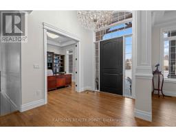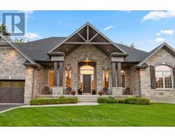 This Magnificent Custom Stone Manor is the pride of the Prestige Collection nestled in Campbellville's "Bridlewood, The Estate Residences" by Carson Reid Homes. This is the Equestrian model showcasing over 7000SF of finished living space including an addt'l upgrade of 745sqft over base model. Upon entering, you are welcomed with 13ft soaring ceilings in the foyer, 11ft ceilings in the office and dining, 10ft coffered ceilings in the Fam/Rm, Liv/Rm, & prim B/R, 12 ft cathedral ceilings in B/Rs. California knockdown ceilings throughout, solid oak hardwood on main, 8' doors, large windows with Hunter Douglas coverings (automated in Fam & breakfast), crown moulding in Liv/rm, Din/rm, office, foyer, & bsmt, wainscotting & decorative pillars upstairs and downstairs. Grand kitchen features granite counters, accent lighting, o/sized island with seating, dinette with w/o to covered patio in the b/yard, B/I Custom Sub-zero fridge & wine fridge, Wolf electric stove, microwave, Asko Dishwasher plus Wolf Gas Stove & Oven, Swarovski crystal light fixtures throughout main, 2 Napolean gas f/p in living & family, ethernet in every rm, hardwired 10 camera security system/carbon monoxide/smoke, Sonos speaker system on both floors, solid maple B/I cabinetry in office. Prim Bed features an opulent 5PC Ensuite & large W/I closet with B/I cabinetry. Finished bsmt w permit & $300K+ on upgrades incl 8' finished ceilings, open concept layout, large windows, entertainment area with high-end surround sound & custom cabinetry, 60" linear gas f/p, pool table, glass enclosed gym room with cushioned flooring & gym equipment, solid maple wet bar w dual zone wine fridge, 2 extra rooms with large windows, extra-large cold cellar, upgraded high capacity well (20gpm), steam humidifier, water softener/RO/UV light water treatment. Exterior features manicured lawns with 10 zone irrigation system, meticulous landscaping, Gas BBQ line & firepit in b/yard. Heated & insulated O/sized 3 car garage (34'x24') (id:61594)