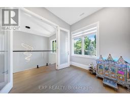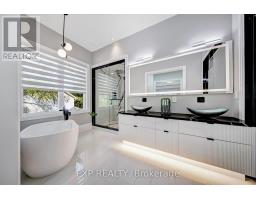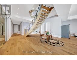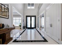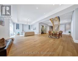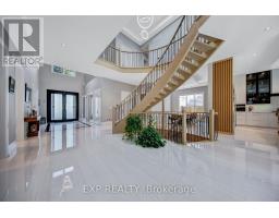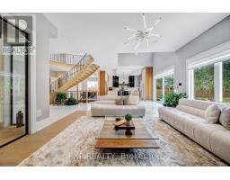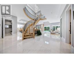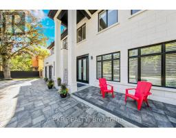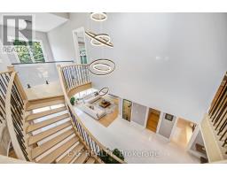 Welcome to 150 Wolfdale Avenue. Entertainers dream home, built by Ambassador Fine Custom Homes in 2023 fall, on a 0.36 acres in Southwest Oakville, south of Lakeshore Road. With 7276 square feet of living space on all three levels, this home perfectly combines sophisticated luxurious design with quality construction to create the ultimate package. The main floor is beautifully designed with exquisite detail radiant heated large porcelain tiles. The near 11-foot ceilings provide an open-airy feeling throughout. No estate home would be complete without a grand foyer and and this home has just that with 22 -foot ceilings, center of the house with 24-foot ceilings with large skylight allowing the entire house to be flooded with natural light while also highlighting the stunning hanging circular staircase beneath. Built-in wine cellar storage for over 180 bottles. The kitchen is a show piece with stunning 10-foot waterfall island, quartz slab backsplash and two-toned cabinetry and top-of-the-line Wolf ,Sub-Zero & Miele appliances. The kitchen/great room combination is designed for large scale entertaining with it being open concept to the dining room. A tucked away mud room, walk in closet with custom shelving & an elegant custom powder room are the perfect spaces to keep your family organized while providing inside access to both the garage and rear yard. Main floor you find your primary home office with front yard views. Elevator besides mud area travels all 3 floors for convenience of movement. The upper hallway stops you with a beautifully vaulted ceiling, skylights. Primary bedroom is located across the rear of the home taking in the best views of the backyard with ample natural light. The open concept walk-in closet with a skylight complements the primary ensuite, is a beautiful combination of rich tones to create the ultimate spa oasis. 3 additional bedrooms, Laundry & Library are found upstairs, each one uniquely decorated & appointed with closets and ensuites. (id:61594)