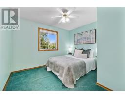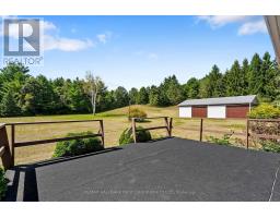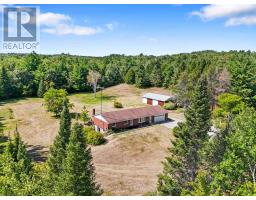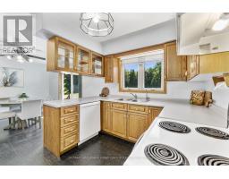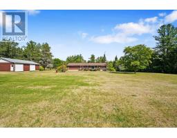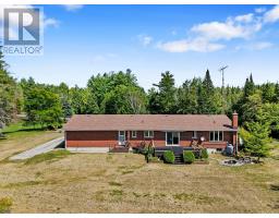 Situated on 4.63 acres on a quiet, dead-end street, this character-filled bungalow offers an attached garage, a detached workshop, and a walkout basement with potential for in-law accommodations. The bright front living room showcases natural wood trim and a wall of bow windows that flood the space with sunlight. An open kitchen and dining area provide the perfect setting for gatherings, with a walkout to the back deck that seamlessly extends the living space outdoors. The kitchen features a peninsula prep counter, warm wood cabinetry, and a large window framing views of the backyard. The primary suite boasts a generous window that highlights the incredible vistas, along with an en-suite and walk-in closet. Two additional bedrooms, a full bathroom, and a guest bath complete the main level. The lower level offers endless versatility with a sprawling recreation room, stone-clad fireplace, walkout, and a kitchenette that could easily be expanded into a full kitchen and dining area, and a large bedroom. Outside, acres of open space surround a spacious elevated deck, bordered by mature perennial shrubs. A 1,359 sq. ft. workshop provides an exceptional space for car enthusiasts, hobbyists, or those seeking a home-based business opportunity. Just off Hwy 45 and located close to Rice Lake, this property offers privacy, natural beauty, and the relaxed pace of country living. The ideal retreat for those eager to make a home their own. (id:61594)
