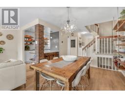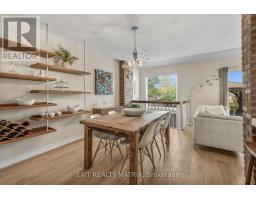 Welcome to this exceptional Orleans home, where timeless charm meets modern upgrades. From the moment you step inside, gleaming high-end laminate floors and a spacious open-concept main level set the stage for stylish everyday living. The bright dining area, cozy living room with exposed brick, and dream chefs kitchen create a perfect flow for entertaining and family life. Renovated in 2021, the kitchen showcases quartz countertops, high-end appliances, a walk-in pantry, and a seamless transition through patio doors to the private yard. A convenient powder room completes the main level. Upstairs, you'll find three bedrooms, including a beautiful primary retreat with a walk-in closet, ensuite, and a feature accent wall. The cleverly designed second level also includes a combined bedroom and laundry space renovated in 2019, adding functionality to the home. The fully finished basement extends the living space with a large family and recreation area along with abundant storage. The exterior is just as impressive, with a very large private lot offering no rear neighbours and plenty of space to relax or entertain. A backyard oasis awaits with a new deck, gazebo, and hot tub. Other updates include an insulated garage, a double-wide driveway with interlock steps and walkway, most windows replaced in 2021, and new flooring on both the main and basement levels in 2022. This home truly combines modern upgrades, thoughtful design, and an incredible setting in one of Orleans most desirable areas. Don't miss this true gem! (id:61594)