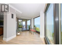 $1,456.88 MonthlyPrepare to be captivated by this exceptional, fully renovated waterfront condo offering breathtaking, unobstructed views of Lake Ontario from Niagara-on-the-Lake to Burlington, and across to the Toronto skyline. This is luxury condo living at its finest. Step into an elegant, open-concept layout filled with natural light and designer finishes. The modern kitchen features Cambria quartz countertops, high-end Bosch stainless steel appliances, and smart design that makes cooking a pleasure. The living and dining areas seamlessly connect to the bright solarium and oversized balcony, perfect for entertaining or relaxing while taking in the panoramic lake views.The primary suite is a serene retreat with direct balcony access and spectacular water views. The spa-inspired ensuite includes a glass-enclosed shower and a soaker tub with a soft matte finish. The versatile office doubles as a second bedroom, complete with a built-in Murphy bed. A second full bathroom features a spacious walk-in shower and stylish accessibility enhancements including grab bars. Additional features include:Hunter Douglas automatic blinds, new windows throughout the building (2023), Custom cabinetry and smart storage solutions, plenty of visitor parking, direct access to the waterfront trail, close to shopping, parks, and all amenities. This condo offers a rare blend of luxury, functionality, and unbeatable views. You truly have to see it in person to appreciate the quality and lifestyle it offers. (id:61594)