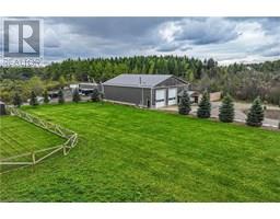This truly remarkable 55-acre farm in Flamborough is the perfect blend of space, practicality, and comfort. The 2,625 sq ft bungalow offers a spacious and inviting living area, ideal for those seeking a peaceful country lifestyle. The open concept chefs kitchen comes with high end SS appliances, a gas range, oversized entertainers island and gorgeous white quartz countertops which roam throughout. Both the primary and secondary bedrooms have spa like ensuites with high end finishes and massive walk in closets! The primary bedroom has its own private porch, louvolite power blinds and the ensuite has heated floors and a steam shower! Separate yourself inside your secluded office to accomplish focused work, equipped with its own kitchenette. The newly finished triple garage with epoxy flooring is ready to store your toys in style. The expansive 3,800 sq ft workshop is perfect for hobbyists, entrepreneurs, or anyone needing substantial space for projects and equipment. The 6,000 sq ft barn provides excellent versatility, whether for livestock, storage, or potential events. To top it off, the back deck features a swim spa, and outdoor kitchen, creating a serene retreat for relaxation and enjoying the stunning rural views. Experience tranquility with your southern exposure as the sun rises on the horizon, piercing through your perfect views of the meticulously cared for landscape. Making this property a true gem for both work and leisure. An absolute must experience rare offering (id:61594)