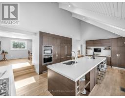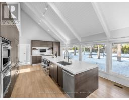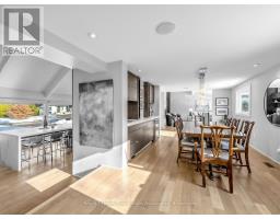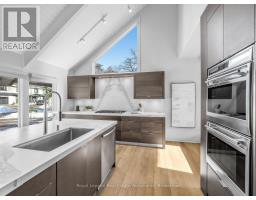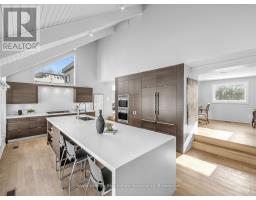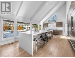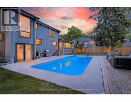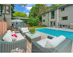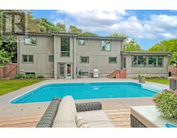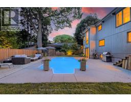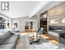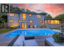 Welcome to 1510 Point-O-Woods on a high-demand, quiet cul-de-sac in prestigious Mineola West. A striking 11' fiberglass entry door with rain-textured glass, transom, and sidelights welcomes you into a foyer featuring porcelain tile floors, built-in organized closet, and an open-concept staircase with glass side rail and oak railing. The stunning stacked-stone feature wall and oversized window, with its picturesque views of the pool and lush back garden, are a standout feature. Designed for effortless entertaining, the dining room boasts a custom servery/butler's pantry with honed-slab porcelain counters, built-in wine storage, a Marvel wine fridge, and two large windows overlooking the backyard oasis. The showpiece kitchen by Concept Kitchens features solid maple cabinetry, honed porcelain countertops, a coffee bar with included TV, and an expansive island seating seven. Premium appliances include a Sub-Zero refrigerator/freezer, Wolf 5-burner range, built-in double ovens, and a Bosch dishwasher. Vaulted ceilings and floor-to-ceiling windows flood the space with light. The family room impresses with vaulted ceilings, custom floor-to-ceiling cabinetry, and a limestone stacked-stone fireplace with gas fireplace. Walk out directly to the fully fenced yard, deck (2020), and chlorine pool, complete with new liner and lighting, Raypak heater ('21), pool pump ('23), and robotic cleaner. The upper level offers a serene primary retreat with vaulted ceiling, walk-in closet, and spa-inspired ensuite with heated marble floors and rain shower. A second bedroom enjoys its own ensuite, while additional bedrooms & baths showcase elevated finishes throughout. The finished lower level adds a recreation room, gym/bedroom, full bath with heated floors, & a beautifully appointed laundry room. White oak engineered floors, 200-amp service with additional 200amp panel, natural gas BBQ hookup, & curated inclusions complete this exceptional home, where luxury meets everyday livability. (id:61594)