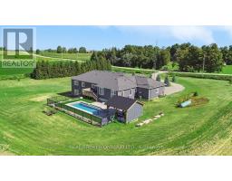 Welcome to 151116 12th Line. Set on 2.06 acres in East Garafraxa, this bungalow blends refined finishes with everyday functionality. A long circular driveway and three-car garage with direct access create a strong first impression while providing ample parking for family gatherings and guests. Inside, the open-concept main floor is filled with natural light and finished with durable vinyl flooring throughout, making it both stylish and family-friendly. The front dining room features large windows, while the chef-inspired kitchen anchors the home with quartz countertops, a centre island, farmhouse sink, stainless steel appliances, extended cabinetry, pantry storage, pot lights, and a window overlooking the backyard. The adjacent living room offers a warm, inviting atmosphere with pot lighting, expansive windows, and French doors leading to the deck, perfect for seamless indoor-outdoor living. The primary bedroom is a private retreat featuring a walk-in closet, and a spa-like five-piece ensuite with heated floors, ideal for unwinding at the end of the day. Two additional main-floor bedrooms include double closets and oversized windows, while a full four-piece bathroom, powder room, and main-floor laundry add everyday convenience. The partially finished walk-out basement extends the home's versatility with nine-foot ceilings, a fourth bedroom with walk-in closet, and a modern three-piece bathroom. With generous unfinished space, this level offers endless potential for a home office, gym, recreation area, or future in-law suite. Walk-out access leads directly to the backyard. Outside, the property truly shines. The backyard is a private resort, featuring a heated saltwater inground pool installed in 2021. The pool pavilion creates the perfect setting for summer entertaining and late-night gatherings. This home delivers modern comfort without sacrificing rural tranquility. This is more than a house. It is a lifestyle designed for families ready to settle in and stay. (id:61594)