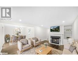 Stylish, Fully Renovated Townhome in a Sought-After Location! This beautifully updated home offers modern comfort and exceptional functionality across three finished levels. The bright, open-concept main floor features engineered hardwood flooring, a spacious living area with a wood-burning fireplace and custom built-ins, and a great sized dining room with walkout to a large, private deck. The custom eat-in kitchen is complete with stainless steel appliances, stone backsplash, under-cabinet lighting, and pot lights that highlight the space. Upstairs, the primary suite offers double-door entry, a walk-in closet, and a private 3-piece ensuite, while two additional bedrooms share a full 4-piece bathroom and provide generous closet space. The finished basement adds even more living space, featuring a large rec room, office or flex space, garage access, and plenty of storage. Located in a family-friendly community just steps from parks, trails, top-rated schools, shopping, and transit with easy highway access and just under 40 minutes to Pearson Airport, this home is move-in ready and perfectly positioned for modern living. (id:61594)