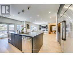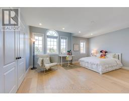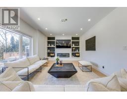 Prestigious Joshua Creek! Exceptional 5 Bed, 5 Bath executive home with over 5,000 sqft of finished living space. Park directly in front and private ravine lot with access to scenic trails. Safe walking distance to top-rated schools (K-G8) - enjoy the rare comfort of watching your children walk to and from school. Main floor features 15-ft ceilings in the living room, private office, formal dining, and open-concept kitchen with unique LG Viatera Quartz counters, Blum push-open cabinetry, upper pull-down storage, and all-new Dacor appliances (2023): 36" hood fan, 36" professional range, 42" built-in fridge, built-in microwave & dishwasher. Walk-out to upper deck overlooking ravine. Hardwood floors throughout main level. Upper level offers 5 bedrooms with ensuite access. Primary retreat with 5-pc ensuite, Jacuzzi tub & 2 walk-in closets. Two Jack & Jill baths serve remaining bedrooms. Fully finished walk-out basement with gas fireplace, bar, pool table area, dance/exercise space, sauna room, 3-pc bath & direct yard access. Landscaped yard with sprinkler system, gas BBQ hookup. Outdoor furniture, pool table & guest room bed included. Extensive updates include: All-new Dacor kitchen appliances (2023) New Whirlpool washer & dryer (2023) Front entry door & patio door replaced (2023) Windows resealed and recaulked (2023) Backyard drainage improvements (2023) Outdoor lighting installed (2023) Roof maintenance (2024) (id:61594)