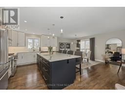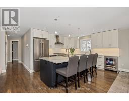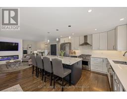 Exceptional residence in a wonderful neighborhood, step into this stylish home. Welcoming foyer with built in closets/drawers also accesses the oversized garage. On the same level, the updated powder room shares space with a neatly stacked washer/dryer. The upper level opens to a living room with electric fireplace, with wall mounted TV. Kitchen with quartz countertops and sleek white cabinets has amazing island with extra prep sink. Lots of storage options along with a large pantry. The well designed kitchen overlooks the dining area that has easy access to outdoor living spaces. Primary bedroom boasts a sumptuous ensuite bath with double vanity, soaking tub and large walk-in shower. Second bedroom completes the upper floor. Hardwood throughout. Lower level boasts a spacious family room with large windows that allow natural light to fill the space. Two bedrooms with oversized closets and large windows share a full bath in the lower level. Lovely rear yard offering peace and tranquility with decks designed for entertaining and relaxing. Upgrades include upper bedroom windows (2025), Deck (2024), Front entry (2023), Patio door (2022), Kitchen, Ensuite bath, Electric fireplace, Shower in lower level, Garden shed (2021). (id:61594)