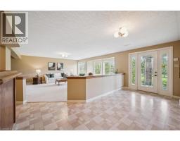 Sought after Foxboro Green Adult Lifestyle Community next to Foxwood Golf course. If you've been looking for a home at Foxboro Green which backs on to the golf course, then this home is for you. As you enter this lovely home, you'll appreciate the treed view from the expansive windows across the back of the home. This well maintained 3 bedroom/3 bathroom all brick bungalow features a walk-out basement and is one of the larger model homes in the community being a custom Juniper model at 1,995 sq ft with a double garage. The main floor offers an open concept kitchen/family room with gas fireplace and opens to large deck to enjoy your morning coffee overlooking the golf course. Continuing on the main floor is an elegant dining/living room with large bright windows, spacious primary bedroom with 3 pc ensuite, 2 closets, a 3 pc main bath as well as main floor laundry . The bright finished walk-out basement features large rec room/entertainment bar area, office, guest bedroom & 3 pc bath. Updates include Roof (2025), zebra blinds, composite deck (approx 2022), kitchen appliances (2022), generator (2025), gas BBQ (approx 2022), garage doors (approx 2020), water softener (2022). Superb Rec Centre with swimming pool, tennis/pickle ball court, library, party room, games room, fitness room, workshop & more. 10 minutes from Waterloo, Costco & Ira Needles. This active lifestyle awaits you! (id:61594)
