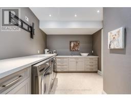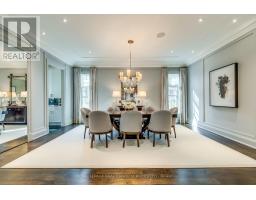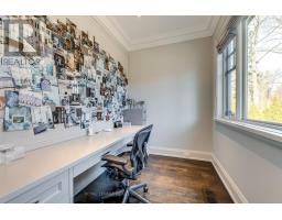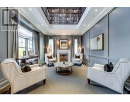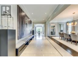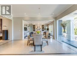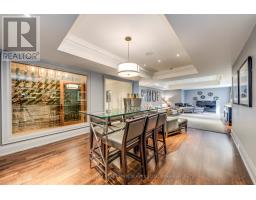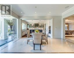Elegant Custom Estate in Prestigious Southeast Oakville. Experience refined living in this stunning custom residence offering over 4,800 sq ft above grade and more than 7,300 sq ft of total living space. Thoughtfully designed by Michael Pettes and expertly built by PCM, this home showcases timeless architecture and exceptional craftsmanship throughout. The main level exudes European sophistication, featuring plaster crown mouldings, custom drapery, designer wall sconces, and intricate architectural detailing. A dramatic main floor library impresses with soaring ceilings, a gas fireplace, and a striking wrought-iron catwalk above. The grand formal dining room comfortably accommodates large gatherings, perfect for elegant entertaining. At the heart of the home is a Downsview chef's kitchen complete with a large centre island, servery, and seamless flow into the breakfast area and spacious family room. The upper level offers an outstanding layout highlighted by a wide skylit hallway-ideal for displaying art or family memories. All four generously sized bedrooms feature private ensuites and ample closets. The luxurious primary retreat boasts a cathedral ceiling, dressing room, and spa-inspired ensuite with a built-in bookshelf beside the soaker tub. The fully finished lower level is designed for both relaxation and entertaining, featuring a fifth bedroom, full bath, expansive recreation room with wet bar, and a stone-accent wine cellar. A large laundry room with extensive counter space and a wide winding walk-up to the backyard adds convenience. Additional highlights include a main floor den, upper-level study, heated interlock driveway, oversized garage with car lift capability, covered rear porch, and dual furnaces and A/C units. Ideally located within walking distance to top-rated schools and just minutes to shopping, amenities, and major highways, this exceptional home offers luxury, functionality, and an unbeatable Southeast Oakville lifestyle. (id:61594)