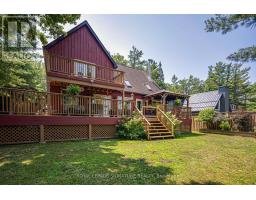 Postcard Perfect Waterfront Living! This beautifully maintained 3+1 bedroom, 3 bath year-round home offers big boat access to the Trent Severn Waterway and features cathedral ceilings, hardwood floors, and a floor-to-ceiling stone fireplace in an open-concept layout with multiple walkouts to a large deck showcasing stunning water views. The finished lower level includes a spacious rec room, games area, built-in sauna in the washroom basement and elevated wet bar-ideal for entertaining. The primary suite boasts a walkout balcony, 5-piece ensuite, walk-through closet, and private studio/office space. Enjoy deep water access, covered wet slip, plus attached and detached garages for all your waterfront lifestyle needs. (id:61594)