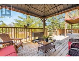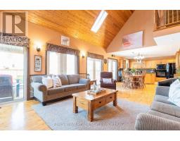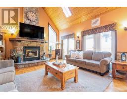 Top 5 Reasons You Will Love This Home: 1) Immaculate waterfront home showcasing exceptional curb appeal, perfectly positioned along the scenic Trent-Severn Waterway, where pride of ownership meets a picturesque setting and effortless access to endless boating adventures 2) Main level boasting a bright, open-concept design with soaring vaulted ceilings, a stunning floor-to-ceiling fireplace as the focal point, a spacious, well-appointed kitchen, and breathtaking views that create an inviting and unforgettable living space 3) Upper level primary retreat featuring a spacious walk-in closet and a luxurious 5-piece ensuite, complemented by a private balcony and a versatile office space that can easily be converted into a fourth bedroom or nursery 4) Additional detached garage providing excellent storage or workspace, plus an expansive deck that extends to 70' of private waterfront, ideal for entertaining, relaxing, and enjoying a true lakeside setting 5) Fully finished basement featuring a stylish wet bar, an additional bedroom, and a spacious living area, creating the perfect setting for hosting and entertaining guests. 2,189 above grade sq.ft. plus a finished basement. (id:61594)