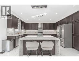 Stunning showstopper in the highly sought-after Ford community! This beautifully maintained and fully upgraded 5-bedroom detached home offers an impressive 3,313 sq ft of elegant living space that perfectly blends luxury and functionality. Step through a grand double door entry into a bright, open-concept main floor highlighted by soaring 9-ft ceilings, pot lights, and rich oak stairs with striking iron spindles. The expansive family room features a cozy gas fireplace and extended windows that bathe the space in natural light, seamlessly connecting to an extraordinary chefs kitchen. Here you'll find stainless steel appliances, upgraded tile flooring, luxury quartz countertops with a matching backsplash, extended cabinetry, a huge pantry, and a massive centre island with a breakfast bar perfect for casual meals or lively gatherings. The separate formal living and dining rooms provide wonderful spaces to entertain. Upstairs continues to impress with 9-ft ceilings and generously sized bedrooms, including a stunning primary Bedroom complete with a lavish ensuite and oversized closets. Four additional bedrooms offer great space and well-appointed closets, ideal for a growing family. Luxury tiles 24 by 24 in kitchen and hallway, abundant pot lights, and a carpet-free design create a fresh, modern atmosphere. Added exterior cameras offer peace of mind, while the double garage enhances everyday convenience. Located close to top-rated schools, scenic parks, and shopping, this meticulously crafted, move-in-ready gem delivers an unmatched lifestyle in one of the area's most desirable neighborhoods. Don't miss your chance to make this exceptional home yours! (id:61594)