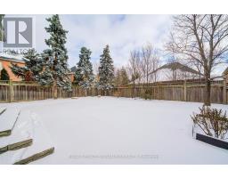 Welcome to Oakville's prestigious Joshua Creek community, where convenience, luxury, and top-rated schools come together. This stunning Ballantry-built home sits on a premium deep lot with approximately 60' width across the rear, offering exceptional privacy and a professionally landscaped backyard with cobblestone-style patio, towering 28' Blue Spruce trees, maple, ornamental pear trees, and large cedars. Approximately 3,540 sq. ft. of luxurious living space features an upgraded fiberglass front entry door, hardwood flooring throughout the home, 9' main floor ceilings, crown mouldings, and a curved oak staircase. The main floor features a private office, a sunken formal living room with tapered columns, crown mouldings, and pot lights, and an elegant dining room with coffered ceiling and hardwood floors. The extensively upgraded and modified kitchen boasts maple cabinetry, extended-height upper cabinets, granite countertops, travertine backsplash, stainless steel appliances, a breakfast bar, and a walk-out to the breakfast area. The open-concept family room, anchored by a gas fireplace, completes this level, providing a perfect space for family gatherings and entertaining. The second floor features a spacious primary suite with a spa-inspired ensuite, including a luxurious soaker tub and a large walk-in closet. Three additional bedrooms include one with a private ensuite, providing comfort and convenience for family or guests. An exceptional home offering outstanding location, privacy and quality craftsmanship. (id:61594)