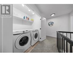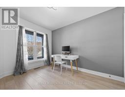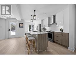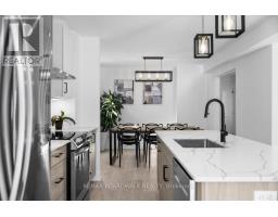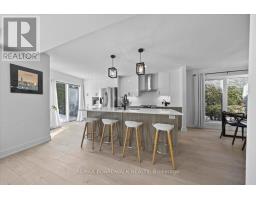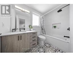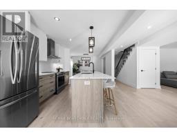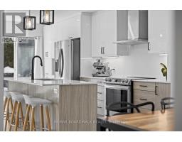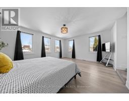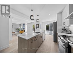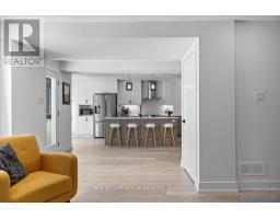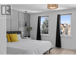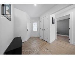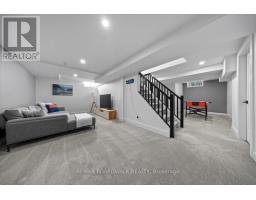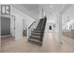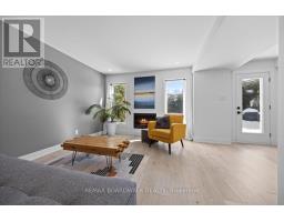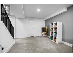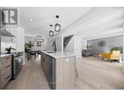 Welcome to a thoughtfully updated home blending classic architecture with refined modern interiors. The brick facade is complemented by black trimmed windows and an upgraded front entry, creating a strong exterior presence. An interlock walkway leads to a covered veranda, while the extended driveway accommodates parking in addition to the garage w EV charger. Inside, a bright foyer introduces wide plank 5" luxury flooring, flat ceilings, and clean baseboards throughout the main level. A staircase with wrought iron spindles creates a striking architectural feature. Main floor room offers flexibility as a home office or additional living space. The open concept layout connects the kitchen, dining, and living areas, designed for both everyday living and entertaining. Expansive windows and dual garden doors bring in natural light and lead to the backyard. The dining area is highlighted by statement lighting, while the living room offers space to unwind. The kitchen features quartz countertops, an extended island with seating for 4, SS appliances, fluted hood fan, wall pantry, and pendant lighting. White cabinetry with matte black hardware adds a clean contemporary contrast. The 2nd level offers 4 great sized bedrooms, updated bathrooms, and a dedicated laundry area. The primary suite features 5 windows, a walk in closet, and a 5 pce ensuite with oversized tile, double vanity w quartz counters, glass shower, and deep soaker tub under a window. A bay window enhances the largest secondary bedroom. The finished basement adds a spacious rec room with pot lights, flat ceilings, and a flex room for gym, office, or play space. The backyard is bordered by mature hedges for privacy and includes a patio stone area with open green space. Located in an established neighbourhood with quick access to HWY, transit, parks, FR + EN Schools, groceries, library, etc. 24 Hour Irrevocable on offers (id:61594)