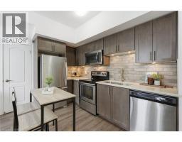 $172 MonthlyModern ground-level, end-unit stacked townhome offering stair-free living, low condo fees, and exceptional value in one of Guelph’s fastest-growing neighbourhoods. This 1-bedroom, 1-bath home is ideal for first-time buyers and downsizers seeking a stylish condo alternative with a garage, outdoor living space, and excellent storage. Recently painted, this open-concept home features a bright living and dining area with upgraded laminate flooring and abundant natural light. The modern kitchen showcases upgraded Barzotti cabinetry, quartz countertops, subway tile backsplash, and stainless steel appliances. Thoughtful design sets this home apart from a typical apartment, with a spacious pantry and two hidden storage areas that maximize functionality. The bedroom features an oversized window that fills the space with light. The modern 4-piece bathroom offers granite counters and a deep soaker tub. Enjoy in-suite laundry, inside-entry from the attached garage, and two parking spaces—a rare find at this price point. Outside, a large fully fenced terrace with morning sun and afternoon shade is perfect for relaxing or low-maintenance outdoor living. Located just 10 minutes from the University of Guelph and close to parks, trails, shopping, and major commuter routes, this home delivers both convenience and lifestyle. With a new development proposed across the street, you’re not just buying a home today—you’re investing in the future of a growing community. A perfect opportunity for first-time buyers and downsizers seeking smart, low-maintenance living. (id:61594)