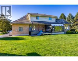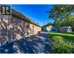 Welcome to 1545 Hwy 3 in Delhi — a custom-built, solid brick ranch that combines elegance, space, and functionality, all set on a quiet, mature lot just under an acre. This peaceful area offers the perfect blend of country charm and convenience, making it highly attractive for buyers seeking both privacy and easy access to nearby towns, amenities, and scenic Norfolk County living. Step inside the grand two-storey foyer, where a curved oak staircase sets the tone for the refined spaces ahead. Formal living and dining rooms are elegantly divided by classic white columns, while the chef’s kitchen is sure to impress with loads of cabinetry, granite counters, island, backsplash, and desk space. Enjoy your morning cup of coffee in the large eating/breakfast nook while admiring your private manicured backyard. The family room is perfect for gatherings, featuring a cozy gas fireplace, and access to the sunroom. The main floor includes a spacious primary suite with a walk-in closet and 4-piece ensuite, a second bedroom/office, a 3-piece bath, and laundry. Upstairs, two more large bedrooms with double closets provide additional space. The basement offers incredible versatility: a full kitchen, rec room, games room, 3-piece bath, workshop, cold cellar, storage, and a walk-up to the outdoors. The basement could easlity be used as a granny suite for those with extended family. Car enthusiasts and hobbyists will appreciate the attached double garage with insulated doors, drains, and hot/cold water taps. Dont miss the back patio featuring a salt water hot tub! A heated triple garage (42x26) and a heated workshop (24x36) with additional garage and lean-to is perfect for anyone looking for extra storage or to start a business! Both outbuildings also have water. A 14x10 garden shed, full sprinkler system, second sandpoint, and paved laneway complete this impressive package. If you’re looking for a property that combines luxury, space, and peaceful surroundings, this is the one. (id:61594)