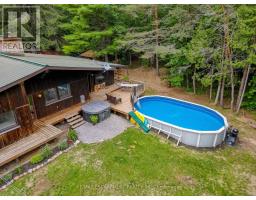 Welcome to 155 Hofer Road your private retreat on 18+ acres of rolling countryside. Renovated and thoughtfully designed, this family home offers the perfect balance of rustic charm and modern comfort. Step inside to a bright and inviting family room where soaring vaulted ceilings, exposed beams, and a wood-burning fireplace create a warm and welcoming atmosphere. Huge windows and a walkout to the deck fill this space with natural light, while pot lighting adds a touch of modern style. The open-concept kitchen and dining area is the true heart of the home, featuring quartz countertops, a farmers sink, a central island, and plenty of storage and prep space ideal for both everyday living and entertaining. On the main level, you'll find two generous bedrooms, including a stunning primary bedroom with a luxurious 5-piece ensuite. A second bedroom and a beautifully updated 4-piece bath ensure comfort and convenience for family or guests. The fully finished lower level provides even more living space with three additional bedrooms, a 3-piece bath, a laundry room, and a large rec room with its own walkout. Perfect for a growing family or hosting overnight guests. Outdoors, every season brings new adventures. In summer, relax in the pool or hot tub, explore the river running through the property, or entertain family and friends on over 1,200 sq. ft. of deck space. Evenings are made for gathering around the firepit under the stars. In winter, lace up your skates and enjoy your own private pond just steps away. Stay connected with Starlink, enjoy the convenience of school bus route access, and appreciate being just 10 minutes to town with easy 401 access. This isn't just a home its a place where every season brings new memories, new adventures, and a way of life you've been waiting for. The only thing missing is you. Its Time to Make YOUR Move! (id:61594)