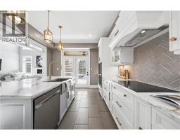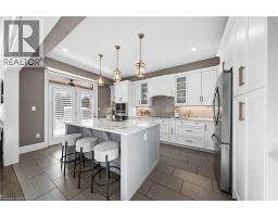 A truly rare offering in one of Waterloo’s most coveted neighbourhoods. Welcome to 155 Oak Park Drive, a stunning, custom-built freehold executive end-unit townhome backing directly onto parkland w/ no rear neighbours, offering exceptional privacy, & 3,400+ SF of finished living space. Offering 4 bedrms & 4 bathrms across 3 fully finished levels, this home stands apart for its size, layout, & privacy-a combination seldom found in Carriage Crossing. The main level impresses immediately, anchored by a dramatic 2-storey great rm w/ gas fireplace & a striking wall of windows overlooking the private, tree-lined backyard, filling the home w/ natural light. The updated kitchen (2022) is elegant & thoughtfully laid out, featuring a lrg centre island, premium appliances, quartz counters, glass herringbone backsplash, & a dedicated bar/servery area. The kitchen flows naturally into the adjacent dining rm, ideal for everyday meals & more formal gatherings, w/ direct access to the covered back porch, patio, & yard for seamless indoor-outdoor living. A 2-pce bath & laundry/mud rm completes the main. Upstairs, the primary suite features vaulted ceilings, dual walk-in closets, & a spa-like 4-pce ensuite w/ dual sinks & tiled glass shower. 2 additional bedrms & a 4-pce main bath w/ tub/shower combo complete the upper level. The finished basement adds versatility, w/ lrg rec rm, 4th bedrm, office/den, 3-pce bath w/ shower, & excellent storage-well suited for a future in-law/guest suite, multi-generational living, or a home office. Beautifully landscaped w/ spectacular curb appeal, featuring 2 separate garage doors & parking for 4 vehicles. Enjoy a covered back porch, expansive patio w/ hot tub, & a completely private backyard-perfect for outdoor entertaining, summer evenings, & quiet enjoyment year-round. Steps to trails, Grey Silo Golf Club, Carriage Crossing Plaza, & top-rated schools, w/ easy access to universities, tech campuses, & major HWY’s. This home won’t last! (id:61594)