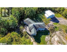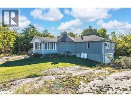 SPACIOUS BUNGALOW SET ON 7.81 ACRES WITH AN ATTACHED GARAGE, HEATED DETACHED SHOP WITH LIVING/OFFICE SPACE & MINUTES TO GEORGIAN BAY! Discover the kind of property buyers dream about but rarely find: 7.81 acres of privacy and natural beauty just minutes from Georgian Bay. Towering trees and rugged Canadian Shield rock frame beautifully landscaped grounds, with armourstone accents, flower beds, and an interlock walkway with steps leading to the front door. A triple-wide driveway provides parking for up to 15 vehicles, complemented by an attached double-car garage and an impressive 30 x 40 ft detached heated shop/garage featuring a finished office or living area and a 14 ft door, offering endless possibilities for hobbyists, contractors, or anyone in need of additional space. This bungalow presents over 2,300 sq ft on the main level with spacious, light-filled living areas, including a great room with a 15 ft beamed cathedral ceiling, a fireplace, and an adjoining dining area, plus a separate living room with crown moulding. The well-appointed kitchen showcases a centre island, pantry, a mix of white and warm wood cabinetry, tile flooring, and a second fireplace, while the vaulted sunroom with large windows and a walkout to the expansive back deck provides the perfect place to enjoy the view. Four generously sized bedrooms include a primary retreat with a 4-piece ensuite featuring a relaxing jetted tub and a glass-walled shower, while another bedroom also offers its own 3-piece ensuite. Main floor laundry adds everyday convenience with a handy sink. Practical features include forced-air propane heating in both the home and the shop/garage, a heat pump in the home for efficient heating and cooling, a drilled well, and 200-amp service. All of this is just minutes from beaches, marinas, the public school, library, LCBO, church, parks, and everyday essentials in Honey Harbour. (id:61594)