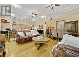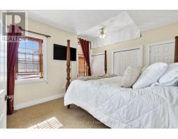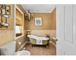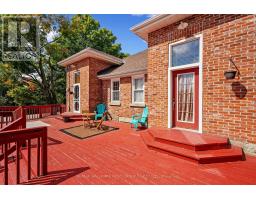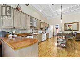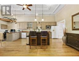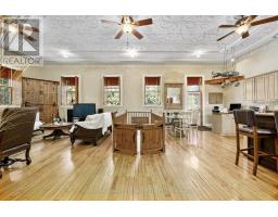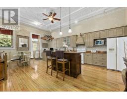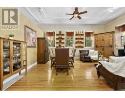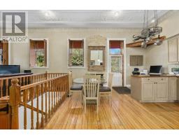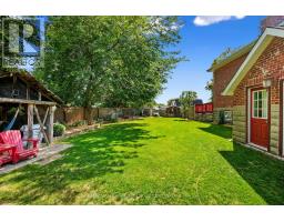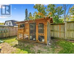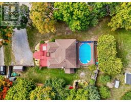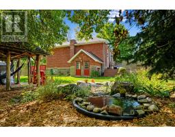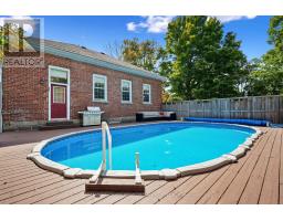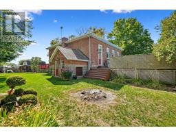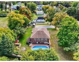 Once a historic schoolhouse, now beautifully transformed into a one-of-a-kind residence, this home is filled with character and charm, built in the early 1900s and thoughtfully updated for modern living. This unique property features a finished lower level with a separate entrance, ideal for a home-based business, in-law suite, or private guest retreat, as well as a backyard oasis that feels like a world of its own. The open principal living space showcases soaring original hand-hammered tin ceilings that have been powder-coated white, creating an unforgettable statement. Sunlight streams through large windows with custom wood shutters, illuminating the spacious living and dining areas designed for effortless entertaining. The expansive eat-in kitchen features an island with a breakfast bar, pendant lighting, matching appliances, a tile backsplash, and a walkout to the back deck. A cozy breakfast area with exposed brick is the perfect spot for informal family meals. On the main floor, you'll find the primary suite complete with dual closets, a private walkout, and a bathroom. Downstairs, the updated lower level offers a large recreation room with recessed lighting, perfect for lounging or game nights. A spacious bedroom, office or guest bedroom, three-piece bathroom and a powder room, plus a laundry room, provide excellent flexibility for today's needs. The outdoor spaces are just as captivating. A welcoming front deck sets the tone for morning coffee, while the backyard unfolds into a true retreat. Enjoy summer afternoons by the pool with a deck surround, relax beneath mature trees (including fruit trees), or wander through vibrant gardens. A rustic gazebo by the koi pond invites quiet moments, and even a chicken coop adds to the charm of this remarkable property. Ideally located close to schools, amenities, and access to the 401, this home seamlessly blends timeless character with modern convenience, a rare find ready to be cherished. (id:61594)