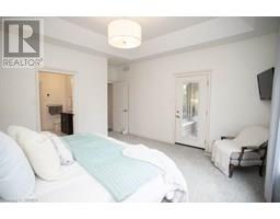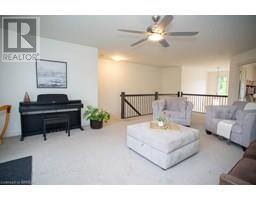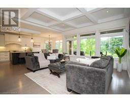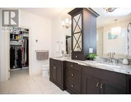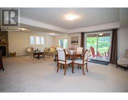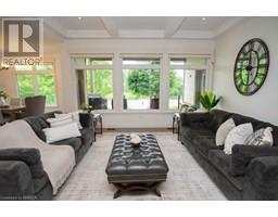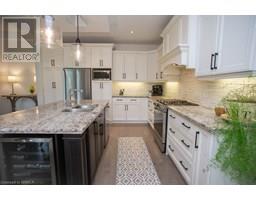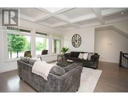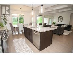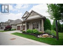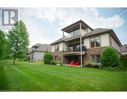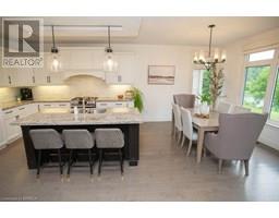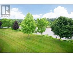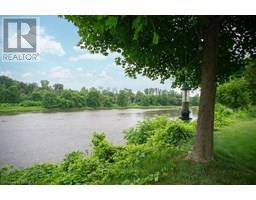 Welcome home to the exquisite Riverview Community located in the charming town of Paris. This Pinevest Model built custom home offers 3+1 beds, 3 full baths, a fully finished WO basement & double car garage & offering unobstructed views of the River! The stone & shaker exterior is striking as you make your way into the home. The 2 storey ceiling height & 8 ft doors in the foyer sets the tone for this bright & airy space. The front of the home offers a bright bedroom w laundry & a full guest bath just steps away. The immense open concept floor plan offers wall-to-wall windows along the back of the home to maintain the serene waterfront landscape from almost every angle. There is also hardwood flooring, LED pot lights & a natural gas fireplace w culture stone - these are the high end finishes that you are looking for! The chef's kitchen is spectacular w modern bright shaker style custom cabinetry w crown moulding, engineered hardwood flooring & custom lighting. There is also an espresso island w pendant lighting, granite countertops & stainless steel appliances including a gas stove. The best part of all is the main level balcony offering the most perfect sunsets! Your main floor primary suite offers a walk-in closet & luxurious ensuite bathroom w a soaker tub, glass enclosed shower, double vanity w granite countertops. The heated floors are a wonderful feature and with access to the main floor balcony, this suite truly has it all! Make your way upstairs to find a second loft living space that offers office space or potential guest quarters with roughed in plumbing for potential additional ensuite. The walkout basement is fully finished & equipped w a wet bar, large rec room w natural gas fireplace, another bedroom & 3rd full bath. Utilize this space as your own home gym! POTL fee covers road/lights/landscaping/sprinkler system & garbage p/u. Enjoy life on the Grand w your private river access, and within walking distance to the bustling downtown Paris. (id:61594)