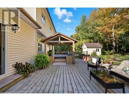 This beautiful 4-bedroom, 2.5-bathroom family home sits on a premium lot backing onto tranquil mature trees and the New York Central Fitness Trail. Step into a warm, inviting foyer leading to your choice of entertaining areas. The spacious front living room flows to a formal dining space with newly refinished hardwood flooring, while the cozy rear family room with a wood-burning fireplace overlooking the backyard offers the perfect spot to relax. The bright kitchen with eat-in area is ideal for casual dining. A convenient powder room completes the main level. Upstairs, you'll find four generous bedrooms, including a primary suite with a 3-piece ensuite and an additional full bathroom. The fully finished lower level features a versatile space suitable for a home office, gym or hobby rooms, plus a large recreation room, a full laundry area and storage. Enjoy your own private retreat outdoors. The backyard includes an expansive deck (2024) and a hot tub in a private enclosure. The yard is landscaped and peaceful, with direct access to a walking/biking trail, pond with fish and raised garden beds. This home is ideal for families or anyone seeking comfort, privacy, and a seamless connection to nature within a charming, welcoming community. Minutes from the Russell Fair Grounds, arena, schools, library, conservation area, sports dome, Keith M. Boyd park & playground, restaurants, cafe and more. Showings by appointment only. Don't miss this one! (id:61594)