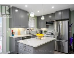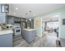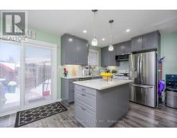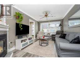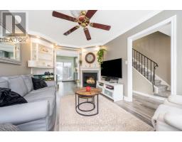$415 MonthlyAffordable living awaits in this beautifully updated three-bedroom, two-bathroom townhouse that's been finished to perfection and truly move-in ready. The main level showcases stylish laminate flooring and tasteful finishes throughout. The modern kitchen features sleek cabinetry, quartz countertops, glass tile backsplash and an island with seating and storage, plus a walkout to a private, fenced yard with gazebo - perfect for relaxing or entertaining. The sun-filled living room offers a warm and welcoming atmosphere with a corner gas fireplace accented by an attractive wood mantel, an eye-catching built-in corner cabinet, crown molding, and pot lighting. Open to the kitchen, this space creates a seamless setting for family life and entertaining. Upstairs, you'll find three generous bedrooms, including a primary bedroom with his-and-hers closets and semi-ensuite access to a four-piece bathroom. A finished basement adds valuable living space with a spacious rec room featuring an electric fireplace, pot lighting and a built-in bar/serving area, along with a four-piece bathroom and laundry/utility/storage area. Ideally located just steps to the mall and close to schools, parks, restaurants, arena, GO Transit and more, with easy access to main roads for commuters. (id:61594)