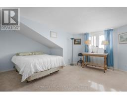 $687 MonthlyOpen House March 29th Sunday 2pm-4pm. Located in the adult lifestyle community of Amberwood Village on a peaceful cul-de-sac, this is beautiful end-unit, semi-bungalow townhome with a single car garage. The home features a spacious foyer with laminate wood flooring and a double closet. The updated kitchen includes classic white cupboards, quartz countertops, stainless steel appliances, a tile backsplash, pot lighting and a breakfast area. The dining room opens to a step-down living room with a wood-burning fireplace and a vaulted ceiling that extends to the second-story loft. French doors lead from the living room to a sunny solarium, which transitions to a private 20 ft. x 16 ft. backyard deck. The main level also includes the primary bedroom with its own private en-suite bathroom. There is also a two-piece powder room, and a separate laundry room. A spiral staircase leads to the second level that features two additional bedrooms, a full bathroom, and a lounge-style loft with an overhead skylight and balcony style railing that overlooks the main living area of the home. The finished basement includes a family room, a large storage area, and a utility room. All-in-all this home has approximately 2,070 sq. ft. of living space plus the basement. The home is within walking distance of Amberwood Golf and Tennis Club, walking paths, and public transit, this home offers a blend of community connection and a peaceful retreat. It is ideal for those looking to downsize or seeking a more relaxed lifestyle. 24 hours irrevocable on all offers. (id:61594)