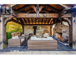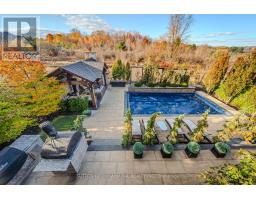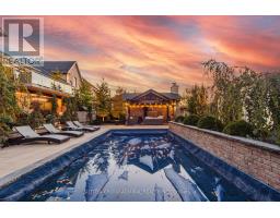 Welcome to this extraordinary Bungaloft Estate, where architectural elegance meets modern luxury. Perfectly set on a lovely ravine lot,this home offers the rare combination of sophistication,comfort and resort-inspired amenities- including a saltwater in-ground pool,cabana with outdoor stone fireplace, triple car heated garage, and a walkout lower level that redefines leisure living.Step inside through the custom Brazilian hardwood front door and be greeted by a grand foyer with cathedral ceilings, 10 ft ceilings on main floor & extensive custom millwork, in-floor lighting & Eurofase lighting. The gourmet kitchen is a culinary masterpiece featuring extended cabinetry, premium appliances, a walk-in pantry and an inviting family size eating area with walk-out to 2-level concrete deck with glass railings with stairs leading to yard. Upstairs the loft has been converted into an elegant glass-enclosed office- ideal for working from home.Each of the four spacious bedrooms boasts its own ensuite bathroom and walk-in closet, providing both privacy and luxury for family and guests alike.The finished basement is an entertainer's paradise, complete with a soundproof theatre room wired for sound, climate controlled wine cellar, custom kitchen, 3-piece bathroom with direct pool access and changing area, a second laundry room and a bright family room with a linear electric fireplace. Fitness enthusiasts will appreciate the gym with mirrored finishes. Loaded with Upgrades! (id:61594)