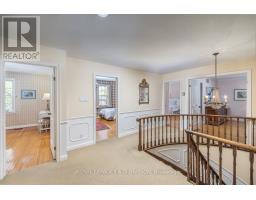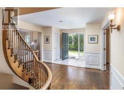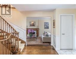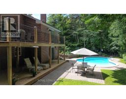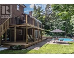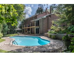 *Open Saturday 1:30pm-4pm* This Georgian-style five bedroom home is beautifully situated on a quiet crescent in St Andrew-Windfields. The 60'x134' ravine lot is one of the largest on the street. This center hall plan with spacious principal rooms, 5064 square feet total, is perfect for family life or entertaining, featuring a dramatic spiral staircase, wainscoting, & hardwood floors. The living room offers a lovely wood burning fireplace & leads into a separate sitting room. The kitchen offers custom oak cabinetry, stainless steel appliances, granite countertops, a walk-in butler's pantry, & a breakfast area. Walk out to the sundeck overlooking the pool and garden from the breakfast area and family room. Also on the main floor is a formal dining room, as well as a family room with a beautiful brick wood burning fireplace. Finally, a laundry room with a side entrance and two separate powder rooms. Five bedrooms are offered on the second floor, the primary retreat with a five-piece ensuite washroom and a walk-in closet. The finished lower level is mostly above grade and has large windows with beautiful natural light streaming throughout, plus two rare walkouts with sliding French doors to the patio and pool. It features an incredible L shaped recreation room with a flagstone wood burning fireplace and an elegant built-in oak bar. Ample storage can be found throughout. There is a home office, and a sixth bedroom currently being used as the billiards room. Outside, the brand-new two-level sundeck or stone patio are perfect for al fresco dining or lounging by the pool, surrounded by mature trees. A stunning private setting in a sought-after neighbourhood, truly an oasis in the city. Conveniently located just minutes from Bayview Village & Shops at Don Mills, & highways. Close to Toronto's best public schools: Dunlace PS, Windfields PS, York Mills CI (ranked #1 by the Fraser Mustard Institute), & private schools: Crescent School, Toronto French School, & Havergal College. (id:61594)