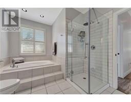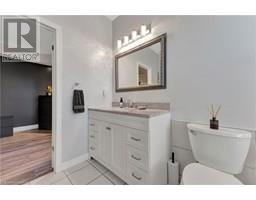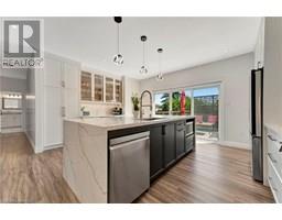 Welcome to this stunning, fully upgraded custom-built bungalow in Brantford’s highly sought-after Mayfair neighbourhood. This beautifully maintained 2 bedroom, 1 bathroom home features 9-foot ceilings and a spacious eat-in kitchen, fully renovated in 2024 with custom cabinetry, quartz countertops and backsplash, reframed and insulated walls, luxury vinyl plank flooring, and Smart LG appliances and a Thor bar fridge. A sliding door leads to a large two-tiered deck overlooking a professionally landscaped yard with in-ground sprinklers in both the front and back. The primary bedroom includes a walk-in closet, additional closet, and ensuite privilege to a 5-piece bath. The bright walk-out basement, is ready for your personal touch. Additional updates include pot lights, lighting fixtures and electrical upgrades (2024), PEX-A plumbing through the entire home (2024), owned hot water tank (2024), central vac , and a full rebuild of the front wall with new window, insulation, and Hardie Board siding (2024). Also featuring a new insulated garage door and side opener (2025), custom stair railings (2024), water filter and softener, and furnace and A/C replaced in 2018. This meticulously renovated, move-in ready home combines thoughtful upgrades, energy efficiency, and elegant finishes in one of Brantford’s most desirable neighborhoods. (id:61594)