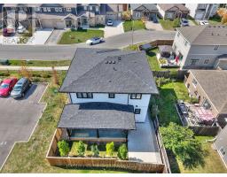Stunning custom built home with high-end finishes throughout, featuring 4+1 Bedrooms and 3.5 Baths and conveniently located close to shopping, restaurants, Parks, walking trails and more. The main level features oversized tile flooring, a gorgeous kitchen with modern two tone cabinetry, large island with waterfall quartz counters, quartz backsplash, and pot lights throughout. Convenient entry from the garage to the mud room/main floor laundry room and 2pc bath. Glass doors from the kitchen/dining area lead to a large covered deck with exterior pot lighting, custom privacy wall, gas bbq hookup and vinyl decking. A custom floating staircase with glass railings and a stunning feature wall lead to the 2nd level. Second level features engineered hardwood flooring, 4 large bedrooms, a stunning 4pc bath with deep soaker tub, a master suite with walk in closet and 3pc ensuite with quartz counters and a custom glass and tile shower. The fully finished lower level features a rec room, additional bedroom w/large window, another 4pc bath, and a cold cellar. Other features include a concrete patio in addition to the deck, covered front porch, custom window coverings, custom vent covers to match flooring, fire sprinkler system, central vac & an on demand hot water system. (id:61594)