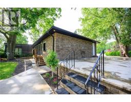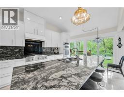 The Perfect Setting in Westdale North Tucked away on a quiet cul-de-sac in coveted Westdale North, this stunning 3-bedroom, 4-bath brick bungalow sits on a large pie-shaped lot backing onto lush Royal Botanical Gardens property. The setting offers rare privacy and a true “getaway” feel—yet is just minutes from Westdale’s shops, cafés, McMaster University, Cootes Paradise, and Highway 403. A welcoming foyer opens to an airy, light-filled interior where vaulted ceilings and wall-to-wall windows bring the outdoors in. The modern great room flows seamlessly into a chef’s kitchen featuring sleek cabinetry, granite counters and backsplash, a large island with seating for four, wine fridge, and high-end built-in appliances including a double oven and stovetop. From here, step out to the concrete patio for effortless indoor/outdoor entertaining. The expansive primary suite is a private retreat with crown moulding, hardwood floors, gas fireplace, walk-in closet, and a spa-like ensuite complete with jetted tub, walk-in shower, dual vanities, and water closet. Two additional main-floor bedrooms and two more full baths provide comfort for family and guests. An impressive open staircase leads to the bright lower level, where full-size windows overlook the backyard. Here you’ll find a massive family room, office, den, and a second kitchen—ideal for multi-generational living or extended stays. Outside, the huge backyard is bordered by mature trees and conservation land, offering a serene escape with plenty of space to relax or play. This rare combination of location, privacy, and luxury makes 16 Freeland Court a must-see. (id:61594)