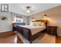 Steps to Lake Ontario in a quiet court location! Best neighbours you could have!! This beautifully maintained 2,073 sqft, 4+1 bedroom, 2.5 bathroom home showcases true pride of ownership with neutral décor and no carpeting throughout. Hardwood floors run through the living, dining, family room, and all bedrooms, with ceramics in the kitchen and bathrooms. The updated eat-in kitchen features granite countertops, oak cabinetry, and ample storage, and opens to a sunken family room with a cozy wood-burning fireplace and walkout to the backyard. Set on one of the largest and most private lots in the area, the backyard offers mature trees, is fully fenced, a spacious deck, above-ground pool (removable), and plenty of room for entertaining or family enjoyment. The primary bedroom includes a walk-in closet and a 3-piece ensuite with a large walk-in shower. The finished basement adds extra living space with a pool table/theatre room (which could be a bedroom) & a finished workout & home salon area plus storage. Numerous updates include A/C (2024), pool pump (2023), furnace (2021), pool liner (2021), windows (2012), shingles (2007) - all dates approximate. Located just a 1-minute walk to scenic lakefront trails and Cherry Beach, close to schools, shopping, parks, and with excellent highway access - only 20 minutes to Niagara or Oakville. Move-in ready and shows beautifully! (id:61594)