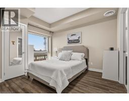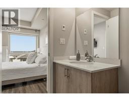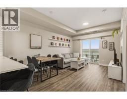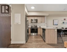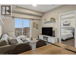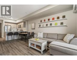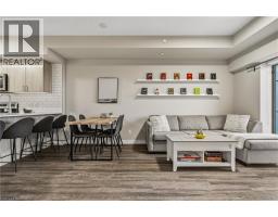 Step into elevated living in this recently built, beautifully appointed and fully furnished condo in a fantastic Ancaster community. Designed with style and comfort in mind, this 1-bedroom, 1.5-bath suite delivers the perfect blend of modern luxury and everyday ease. The open-concept layout feels airy and inviting, anchored by a stunning chef-inspired kitchen featuring sleek stainless steel appliances, quartz countertops, subway tile backsplash, contemporary cabinetry, and a generous breakfast bar made for casual mornings or hosting friends. Soaring 9-foot ceilings and expansive windows flood the living space with natural light, creating a bright, sophisticated atmosphere throughout. The primary retreat is a true standout, complete with a large picture window, a spa-like ensuite, and a walk-in closet outfitted with a custom organization system. In-suite laundry adds everyday convenience, while your private balcony offers the perfect spot to unwind and catch sunset views. Enjoy a carefree lifestyle with exceptional building amenities, including a fully equipped fitness centre, dedicated yoga studio, and an impressive party room with full kitchen that opens onto a landscaped terrace featuring BBQs and cozy gas fire tables. Underground parking, a private locker, and access to two EV charging stations add even more value. Ideally located just minutes from shopping, dining, trails, community centres, and only a short drive to McMaster and Redeemer University, this upgraded, move-in-ready condo is your opportunity to enjoy refined, maintenance-free living from day one. (id:61594)