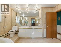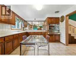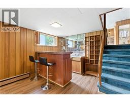 MID-CENTURY MODERN GEM IN CENTRAL HAMILTON MOUNTAIN Welcome to 16 Southill Drive, a custom-built 4-level sidesplit showcasing timeless mid-century modern architecture and character details rarely found today. Ideally situated in a central pocket by Bruce Park, just two blocks from the Mountain Brow, this location puts you literally five minutes from everything, including shopping, schools, transit, and all major amenities. Step inside the grand foyer with soaring cathedral ceilings and a striking solid mahogany wood accent wall, setting the tone for the craftsmanship throughout. Sun-drenched interiors are enhanced by oversized windows, and thoughtful design that highlight the home’s unique character. The top level offers three generous bedrooms, each with oversized closets, along with a spacious four-piece ensuite privilege bath. On the main level you’ll find a dramatic entry foyer, an inviting eat-in kitchen, and an expansive living and dining room designed for gatherings and entertaining. The lower level features a cozy family room with a wood-burning fireplace, a convenient two-piece bath, French doors that open to the backyard patio, and inside entry from the double garage. The basement is fully finished with a large recreation room, wet bar, second kitchen, and a three-piece bath with laundry, providing excellent potential for an in-law setup, extended family, or a versatile entertainment space. Notable updates include a brand new state-of-the-art boiler (2024) powering efficient radiant baseboard heating, along with central air conditioning supplied through forced air to ensure year-round comfort. Additional updates include eavestroughs replaced in 2025. Exterior highlights include a double garage, a double concrete driveway, and a mature lot with inviting patio spaces surrounded by lush greenery. This is a rare opportunity to own a true mid-century modern home, custom built with high-quality materials and endless character. (id:61594)