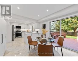 Welcome to this stunning, fully renovated detached home that exudes luxury, comfort, and timeless elegance in every detail. From the moment you enter the grand foyer, you're greeted by crisp new tile flooring, smoothed ceilings, and an immediate sense of sophistication. Thoughtfully designed and meticulously updated, this residence offers the perfect blend of modern finishes and functional living spaces for today's discerning homeowner.The main floor features a spacious office, a convenient laundry room with an additional entrance, and a seamless flow through the living, dining, and family rooms, all with engineered hardwood flooring and pot lights throughout. The bright kitchen has been beautifully refreshed with refaced cabinetry, new countertops, backsplash, sink, faucet, and stainless steel appliances including a new range, dishwasher, and microwave. The eating area opens to a large deck and stone patio, ideal for entertaining or simply enjoying the private backyard oasis.Upstairs, the primary retreat is a true sanctuary - featuring engineered hardwood floors, a private balcony, and a brand-new spa-inspired 5-piece ensuite bathroom with elegant finishes and pot lights. The four additional bedrooms offer ample space, each with new broadloom carpet, while the updated hall bathroom features a contemporary 5-piece design with modern lighting.The fully finished basement includes vinyl flooring throughout, a full kitchen, full bathroom, and a separate entrance - perfect for in-laws, guests, or a live-in caregiver.Every inch of this home has been freshly painted, complete with new baseboards and tasteful updates throughout. Enjoy unobstructed views of the CN Tower and downtown Toronto from the south-facing bedrooms, and take advantage of being directly across from Bayview Reservoir Park - a true gem for nature lovers.Move right in and experience the perfect combination of luxury, functionality, and location in one of the area's most sought-after communities. (id:61594)