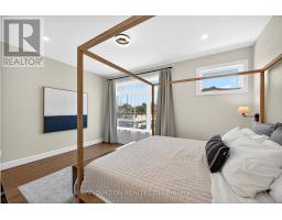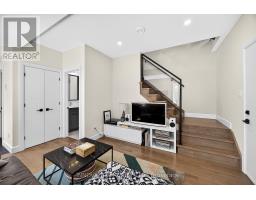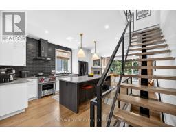 Welcome to this stunning 4-bedroom, 3-storey home where contemporary design meets luxury living. Thoughtfully crafted with style and quality in mind, this property showcases architectural features rarely found in the neighbourhood.Step inside and be impressed by soaring 9-foot ceilings, gleaming hardwood floors, and a striking floating mono-stringer staircase with sleek metal and glass rails. Expansive windows flood the open-concept layout with natural light, highlighting every detail.The second floor/main living area is anchored by a cozy gas fireplace and oversized west-facing sliding doors that open to a covered composite deck ideal for barbecuing year-round. The chef-inspired kitchen shines with custom cabinetry, quartz countertops, a generous island, high-end stainless steel appliances, and a Wolf gas range. A stylish dining area and a bold designer powder room complete this level.Upstairs, the principal suite features a walk-in closet and a spa-like ensuite with a double walk-in shower and radiant heated floors. Two additional bedrooms, each with walk-in closets, share a well-appointed family bath, while the convenient laundry room with sink completes the upper level.The ground floor, with radiant heated floors, offers versatility easily converted into an in-law suite. It includes a fourth bedroom, full bathroom with walk-in shower, family room, and direct access to the landscaped and fenced backyard. This level also connects to the heated, insulated garage with an EV charger and utility room.For added luxury, enjoy the rooftop composite deck with sweeping views and a rough-in for a hot tub. All of this just steps to Beechwood Village amenities, parks, trails, and a quick commute downtown.24-hour irrevocable on all offers as per Form 244. (id:61594)
