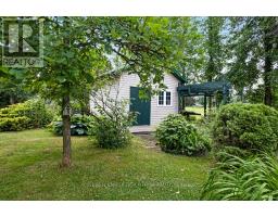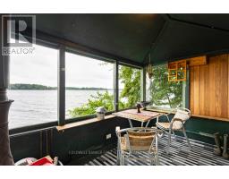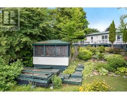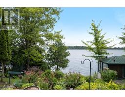 On shores of Big Rideau Lake is a tranquil haven that feels like a world onto itself. When you step thru the front gate, you enter a secret garden where life takes root and blossoms. Lush greenery surrounds you with willowy shrubs, manicured hedges and mature trees forming natural privacy within the fenced property. Pathways meander by amazing perennial beds full of colour. Within this private sanctuary, 2002 bungalow showing great pride of ownership while offering open flex spaces to suit your own lifestyle. Family room, currently dining room, overlook gardens and the Big Rideau with views of the sun rising over the lake. Livingroom, kitchen and dinette flow together with laminate and ceramic flooring. Garden doors open to the back deck with spectacular sunset views. Wrap-around kitchen creates gourmet efficiencies with tasteful style including breakfast bar, ceramic backsplash, crown moulding and deep storage cabinets. Primary bedroom restful with windowed alcove for views of those forever lake sunrises. Second bedroom has desk nook and door to deck. The bathroom features two-person soaking jacuzzi tub. Plus, the bathroom also has laundry station and storage closet. Numerous big closets with lots of storage are found thru-out the home. Outside, you have garden shed with lovely shaded pergola for afternoon respites. The garden shed is designed for gardening with potting bench and shelving. Screened gazebo is at the shore, for lazy summers days by the water. The gazebo, garden shed and pergola all have hydro. For crafts and projects, you have insulated workshop with loft and 100 amps. Crystal clear 60 ft of waterfront is sandy and rocky, gradually getting deeper for great swimming. At end of the dock, depth 5-6 ft. Hi-speed and cell service are available. Located in friendly neighbourhood community where residents share private road maintenance and snow plowing; fee approx $500/yr per resident. You also have curbside garbage and recycling pickup.10 mins to Perth. (id:61594)