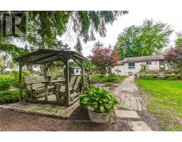 Wow - 8 acres of opportunity located at the edge of the quaint village of Carlisle near major roadways, commerce centres and shopping! Enter from Highway 6 down a long, beautifully tree-lined paved driveway to a well maintained 3+1 (4) bedroom raised bungalow set back off the road in a very private setting. The driveway extends beyond the back of the home to a large paved parking area and turnabout that easily accommodates very large and long vehicles. This property boasts an abundance of structures: a metal-clad 32'x64' workshop equipped with a mezzanine and an oversized garage door, a 30'x42' 5-stall metal barn with tac room, a 14'x24' drive shed and a 14'x16' storage unit. There are also a number of fenced pastures on the property for those who want to enjoy hobby farming.The home has a generously-sized eat-in kitchen e/w stainless steel appliances (2024/2015) and distressed maple cabinets (2014). A large living room, 3 generously sized bedrooms and two 3-piece bathrooms complete the main level. The lower level has a large family room e/w a wood burning fireplace, an abundance of storage cabinets, a large 4th bedroom and a laundry/utility room. Relax in the beautiful back yard which has a gazebo to relax under, and a large multilevel deck (2014) surrounded by a multitude of perennial gardens and a water feature creating a peaceful and inviting ambiance.Home improvements also include a new oil furnace (2021) newer roof shingles (2014), boundary/pastures fencing (an approximate investment of $90,000), electrical panel (2019) and an owned water heater (2014). The home is serviced by a drilled well, which is delivering an abundance water. (id:61594)