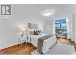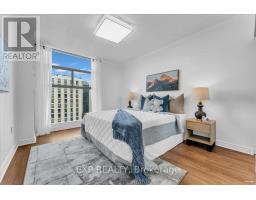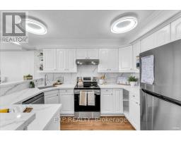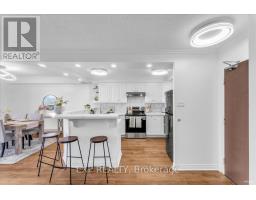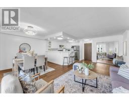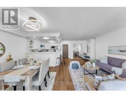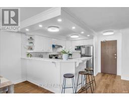 Beautifully renovated corner unit. This 2 bedrooms, 2 bathrooms model suite offers a bright and functional layout with updated laminate flooring, crown molding, pot lights, and floor-to-ceiling windows. The open concept kitchen boasts stainless steel appliances, quartz backsplash, and plenty of quartz counter space. Spacious living/dining area with walk-out to an oversized north-facing balcony. Two large bedrooms with big windows, including a primary with ensuite bath. Both bathrooms have been tastefully updated. Conveniently located close to public transit, groceries, and all amenities. Dont miss outbook your private showing today! (id:61594)