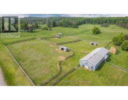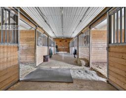 A rare opportunity to own 22.97 acres of scenic countryside in coveted South Adjala, where rolling pastures, mature landscape, and timeless rural charm create the ultimate private retreat. The character-filled century home welcomes you with warmth and authenticity. Inside, wide plank floors, abundant natural light, and inviting living spaces create a relaxed country atmosphere designed for gathering and everyday comfort. The spacious kitchen flows seamlessly into the main living area, anchored by a cozy natural gas fireplace-an ideal setting for entertaining or quiet evenings at home. Step outside and experience the true magic of the property. A covered front porch and expansive rear deck overlook sweeping green fields and open sky, offering peaceful views in every direction and a sense of space that is increasingly rare within reach of the GTA. The land itself is beautifully organized with open pasture, established paddocks, and gently rolling acreage that invites a variety of lifestyle possibilities-from home-based business to hobby farming and equestrian pursuits to simply enjoying the privacy and freedom of country living. A well-designed barn with 7 stalls, 3 run-in sheds, and 7 paddocks makes the property ready for animals or recreational use. A detached, oversized garage/workshop provides additional space for vehicles, equipment, or hobbies, and there is approximately 10 acres of productive hayfield. Modern conveniences such as fibre internet and natural gas ensure comfort and connectivity while enjoying a peaceful rural setting. Perfectly positioned on a paved road with easy access to Hwy 9 & commuter routes just 50 mins to YYZ. (id:61594)