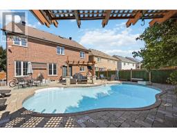 Tributes 'Turnberry' model with inground saltwater pool, finished basement & 3rd storey loft! This stunning 4+2 bedroom, 6 bath, family home features an open concept main floor plan with luxury upgrades throughout with gorgeous hardwood floors including staircase with wrought iron spindles, crown moulding, elegant wainscotting details & the list goes on. Designed with entertaining in mind with the formal living room & dining room with coffered ceiling. Gourmet kitchen boasting new quartz counters, working centre island with breakfast bar, backsplash, large pantry & stainless steel appliances including gas stove. Breakfast area with garden door access to the interlocking patio, pool, 2 pergolas with one wired for surround sound, lush perennial gardens & mature trees for added privacy. Family room with gas fireplace & backyard views. Upstairs offers 4 generous bedrooms, all with ensuite & great closet space with organizers! The primary retreat boasts a walk-in closet & spa like 5pc ensuite with relaxing soaker tub, granite vanity & large glass shower. Additional living space in the amazing loft with 4pc bath. The professionally finished basement is complete with impressive rec room offering a quartz wet bar, cozy 2 sided gas fireplace with custom built-ins, 2 bedrooms & 3pc bath with glass rainfall shower. Nestled in a highly sought after community, steps to schools, parks, downtown Brooklin shops & easy hwy 407/412 access for commuters! (id:61594)