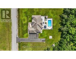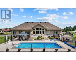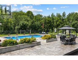 Stunning 4+1-bedroom bungalow located in the heart of Cumberland. The exterior features a blend of stone and stucco, a stamped concrete walkway, an interlock front patio, pot lights under the eavestrough, and a paved driveway leading to a spacious triple-car garage. The home is beautifully lit at night and maintained with a full sprinkler system. Grand entrance w/cathedral ceilings and a tiled foyer that opens to a thoughtfully designed layout w/8-foot doors &detailed trim. Rich hardwood through the main level, including the elegant dining area. The expansive living room boasts floor-to-ceiling windows and a custom media wall featuring a gas fireplace and built-in shelving. The gourmet kitchen is a chefs dream, w/a large centre island, quartz countertops, stainless steel appliances, wall oven, gas cooktop, wine fridge, pot drawers, and a walk-in pantry. The bright and spacious eating area overlooks the backyard and offers easy access to the adjacent den. A main floor office provides a professional space, while the conveniently located laundry rm adds to the home's practicality. A unique highlight of this home is the private guest suite with its own side entrance, a comfortable bedroom, & 3-piece ensuite. Two additional bedrooms on the main floor share a 5-piece Jack and Jill bath. The luxurious primary suite features French doors that open to the backyard, a walk-in closet, spa-inspired ensuite w/soaker tub, dual sinks, quartz countertops, and a large glass walk-in shower. The fully finished lower level offers a bedroom, a den, a flex rm ideal for a home gym or recreation space, and a workshop area with plenty of storage. A separate staircase provides direct access from the basement to the garage. outside private resort-style yard w/stamped concrete patio, natural gas BBQ hookup, gazebo and an outdoor fireplace w/a built-in fire pit. The heated in-ground pool is fully fenced with a dedicated pool shed and an additional storage shed. Style, Function & Luxury await. (id:61594)