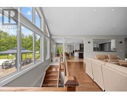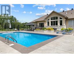 Stunning 4+1-bedroom bungalow w/Inlaw suite - located in the heart of Cumberland. The exterior features a blend of stone and stucco, a stamped concrete walkway, an interlock front patio, pot lights under the eavestrough, w/paved driveway leading to a spacious triple-car garage. The home is beautifully lit at night and maintained with a full sprinkler system. Grand entrance w/cathedral ceilings and a tiled foyer that opens to a thoughtfully designed layout w/8-foot doors &detailed trim. Rich hardwood through the main level, including the elegant dining area. The expansive living room boasts floor-to-ceiling windows and a custom media wall featuring a gas fireplace and built-in shelving. The gourmet kitchen is a chef's dream, w/a large centre island, quartz countertops, stainless steel appliances, wall oven, gas cooktop, wine fridge, pot drawers, and a walk-in pantry. The bright and spacious eating area overlooks the backyard and easy access to the adjacent den. A main floor office provides a professional space, while the conveniently located laundry rm adds to the home's practicality. A unique highlight of this home is the private guest suite with its own side entrance, a comfortable bedroom, & 3-piece ensuite. Two additional bedrooms on the main floor share a 5-piece Jack/Jill bath. The luxurious primary suite features French doors that open to the backyard, a walk-in closet, spa-inspired ensuite w/soaker tub, dual sinks, quartz countertops, and a large glass walk-in shower. The fully finished lower level offers a bedroom, a den, a flex rm ideal for a home gym or recreation space, and a workshop area with plenty of storage. A separate staircase provides direct access from the basement to the garage. outside private resort-style yard w/stamped concrete patio, natural gas BBQ hookup, gazebo and an outdoor fireplace w/a built-in fire pit. The heated in-ground pool is fully fenced with a dedicated pool shed and an additional storage shed. Style, Function & Luxury await. (id:61594)