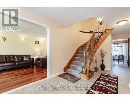 A Must See!!! Beautifully maintained 4-bedroom home in the highly sought-after Olde English Lane neighbourhood. This warm and inviting home offers scenic park views and is conveniently located close to Heart Land Town Centre, Major highways, schools, hospital, places of worship. Home has a spacious layout featuring a formal living and dining area, an inviting family room with fireplace, An eat-in kitchen with stainless steel appliances and recently upgraded counter top and back splash. Four generously sized bedrooms with complete hardwood flooring, recently updated bathrooms. An elegantly furnished basement, with built-in book shelf, wet barand a luxurious Jacuzzi. This home is the perfect blend of elegance, comfort, and convenience. Dont miss out, schedule your showing today! (id:61594)