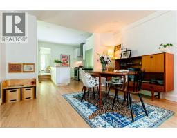 Charming, Light-Filled One-Floor Living at it's best 1,000 sq. ft. of beautifully renovated living space in this move-in ready, semi-detached century cottage. The open-concept layout features oak hardwood floors, recessed lighting, modern trim, and a fresh neutral palette. An oversized premium sliding door floods the space with natural light and opens to a spacious, private backyard. The contemporary kitchen is a standout, showcasing quartz countertops, handcrafted Zellige tile backsplash, under-cabinet lighting, stainless steel appliances, and a full pantry wall for extra storage. Enjoy two comfortable bedrooms, including a primary suite with generous closet space and a luxurious 4-piece bathroom complete with a soaker tub, updated tile, modern vanity, and unique stained glass detail. Additional highlights include a full basement with plenty of storage, laundry, and hobby space, off-street parking, a private patio, and a mature backyard with garden shed—perfect for relaxing or entertaining. Situated in Hamilton's sought after north end the location is perfect for those seeking an active lifestyle down by the Bay. Walk to GO and downtown shops and amenities with easy access to the highway. A super house to make home! (id:61594)