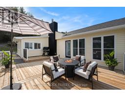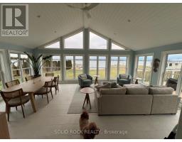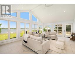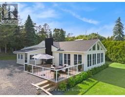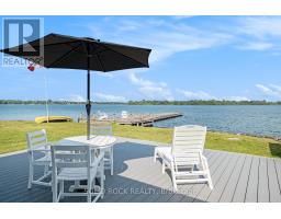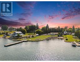 Step into refined waterfront living with this completely renovated 3-bedroom bungalow, blending cozy cottage charm with modern luxury. Nestled on a scenic waterfront of the St Lawrence River, this home offers an open-concept layout designed to make the most of its stunning views and natural light. The heart of the home is the show-stopping kitchen, featuring granite/marble countertops, a large island with a double sink, gleaming stainless steel appliances (2025) including a gas stove and classic white tile backsplash. Adjacent to the kitchen, a spacious galley with matching finishes and an oversized walk-in pantry offers lots of storage. Beamed ceilings run throughout the home, adding warmth and character. The inviting living room, centered around a gas fireplace with built-in shelving and wood accents, flows seamlessly into a striking A-frame sunroom with panoramic water views. Ceramic floors, soaring windows, and direct access to a wooden deck create the perfect space to unwind or entertain. Enjoy your morning coffee or an evening soak under the stars with a hot tub and gazebo just off the back deck. The primary bedroom overlooks the water and includes two generous closets with custom built-ins. A second bedroom enjoys the convenience of its own private powder room, while the main bathroom features elegant ceramic flooring and a rainfall shower. Ideal for hosting or generating income, two stylish bunkies sit close to the water. The larger bunkie boasts its own deck facing the lake, a partial kitchen with quartz counters, country-style sink, stainless steel fridge and vent hood, living space with Murphy bed, and a full 3-piece bath. The smaller bunkie includes a screened-in porch and its own powder room. Whether you're entertaining, relaxing, or hosting guests, every detail has been considered for easy, elegant living by the water. Approx 1 hr from Ottawa, 3 hrs from Toronto and minutes to hwy 401 & 416. (id:61594)