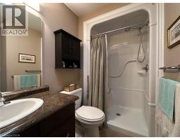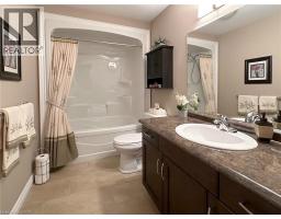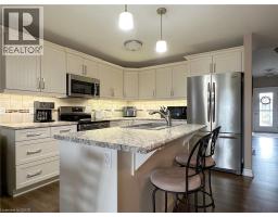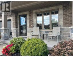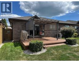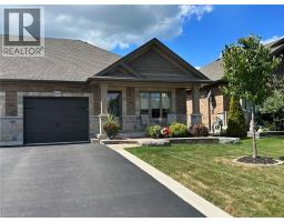 This immaculate stone and brick semi-detached bungalow is situated in a desirable neighborhood, offering both comfort and style. With 2 bedrooms and 2 bathrooms, this property features a welcoming covered front porch and an upgraded kitchen equipped with an island, under-cabinet lighting, and stainless steel appliances. The generous primary bedroom includes a walk-in closet and an ensuite bathroom for added convenience. The second bedroom, currently set up as a sitting room, is great flex space - perfect for an extra bedroom, office, study etc. Step outside to enjoy the beautifully landscaped yard featuring a composite deck with pergola with sunshades, natural gas line (BBQ included), and a shed for additional storage. The unfinished basement has a rough in for a third bathroom. With a main floor laundry and an attached garage, this home is designed for low maintenance, comfortable living. (id:61594)