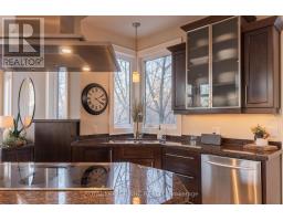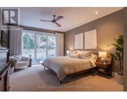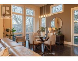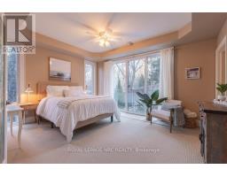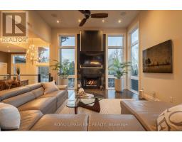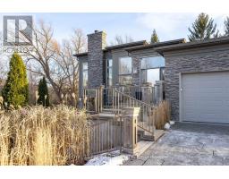 There is a calm that settles over 164A Lakeshore Road the moment you arrive, shaped by thoughtful architecture and a natural connection to the ravine below. Designed by Tom Arbek with Frank Lloyd Wright inspiration, the exterior carries a quiet elegance with a multi-level layout that follows the landscape with intention. That ease extends outdoors through decks that reach toward the ravine and gather shifting light throughout the day, while the inground pool rests among trees and bamboo accents. Perennials add beauty with minimal upkeep, for surroundings that feel effortless every season. Inside, light moves across the tall windows from sunrise into evening, guiding you through 3,235sqft of finished living space that feels both refined and welcoming. The foyer opens to the great room where height, warmth, and natural light anchor the home. The living area surrounds the fireplace and flows into the dining area and kitchen. Double built-in ovens, a glass cooktop, a bespoke smart fridge, a skylight, and a walk-out to the upper deck all contribute to a kitchen designed for gathering. The primary suite rests on this level with expansive windows, a walk-in closet, a 5-piece ensuite, and its own walk-out. A second bedroom, a 4-piece bath, and laundry and pantry complete the main level. The lower level offers flexibility to support different lifestyles. The in-law suite features tall ceilings, large windows, a family room with a fireplace, a kitchenette, and a bedroom with an ensuite. Another wing features a rec room, full kitchen, two bedrooms, and a spa-inspired bath with a steam shower, rain shower, and body jets. Both areas have separate entrances, creating opportunities for privacy, multigenerational living, dedicated guest quarters, or a home business. As a bonus, the basement offers 435sqft unfinished for storage. This home invites you to slow down, find inspiration in the landscape, and experience a way of living that feels both elevated and deeply grounded. (id:61594)